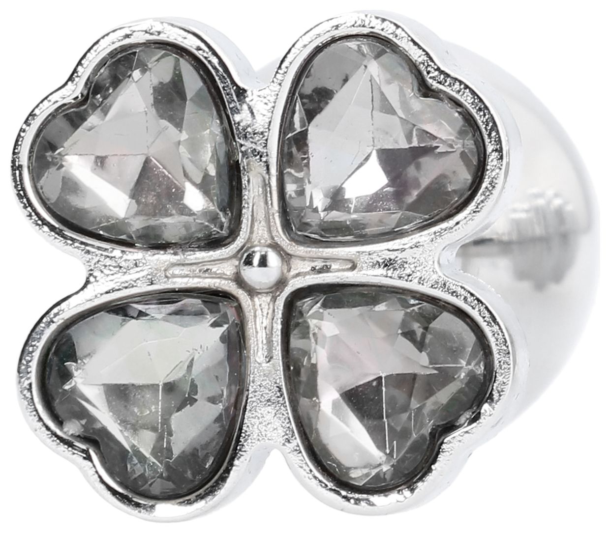 Серебристая анальная пробка с прозрачными кристаллами в форме клевера - 9,5 см