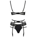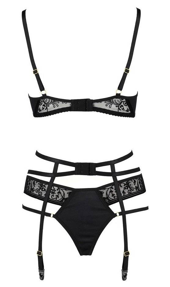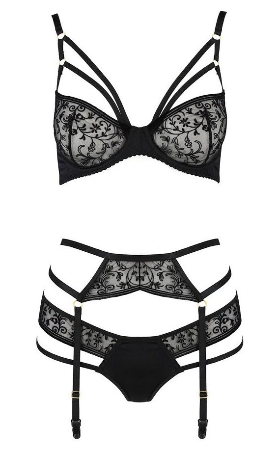 Ваши сексуальные формы станут еще сексуальней, когда вы примерите комплект Aliyah. Ленты, кокетливо очерчивающие грудь, пояс, подчеркивающий талию, и необычная модель трусиков сделают из вас сногсшибательную красотку! В комплекте: бюстгальтер, пояс, трусики.