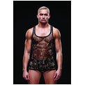 Мужская майка-борцовка, выполнена из эластичного, сетчатого материала черного цвета.Модная мужская майка с узким плечом, подчеркивает сексуальность и зрительно увеличивает плечи.