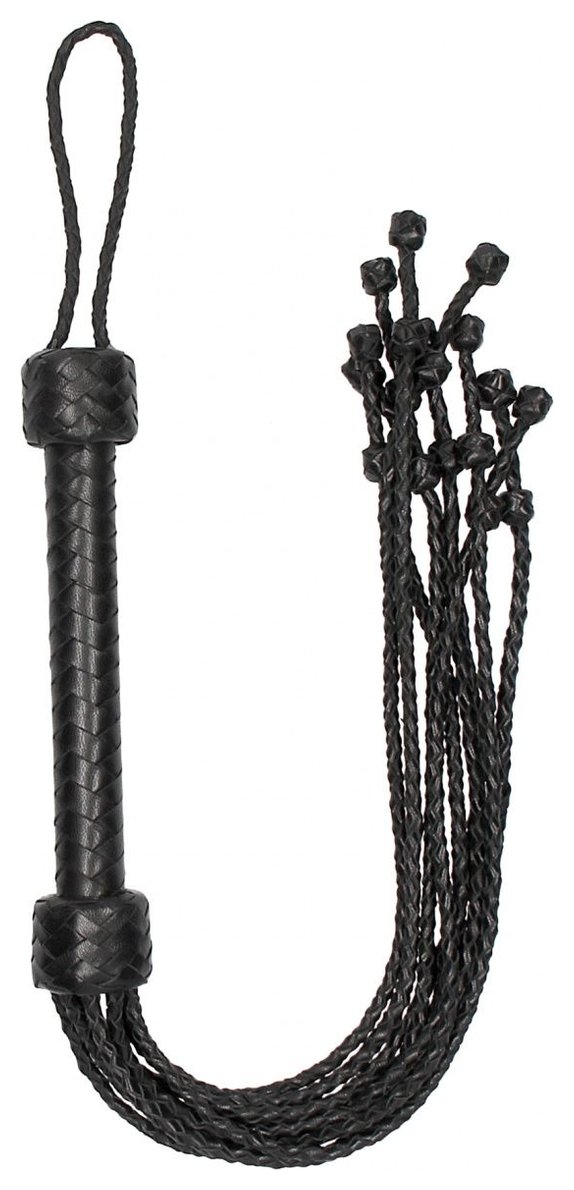 Черная многохвостая плетеная плеть Short Leather Braided Flogger - 69 см