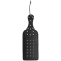 Шлепалка Studded Paddle. Вытяните свою кисть для щекочущих спинной мозг ударов и тяжелых жалящих ударов с помощью этой биты с выступами STUDDED PADDLE из прочной седельной кожи. Наносите удар за ударом со впечатляющей силой и оставьте ягодицы розовыми! Эта кожаная бита с выступами позволяет наносить разные громкие шлепки и слабые и сильные удары и идеально подходит для пар, которые хотят перевести свои ощущения от биться на следующий уровень! The OUCH! Studded Paddle имеет эргономичную ручку и кожаную кистевую лямку для идеального захвата при каждом замахе. 18 выступов расположены на одной стороне, а другая - мягкая и гладкая. Ширина рукояти - 13,5 см.