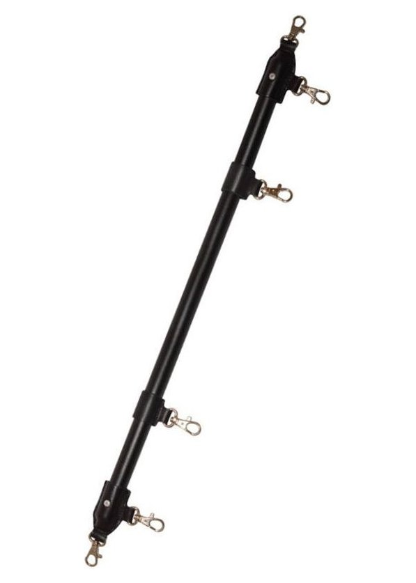 Фиксирующая BDSM-распорка от Sitabella поможет ограничить подвижность партнёра. Девайс состоит из цилиндрической металлической основы и кожаных креплений из натуральной толстой кожи, к которой прикреплены карабины для фиксации наручников или оков. Центральные фиксирующие элементы подвижны относительно основы, что даёт возможность регулировать распорку индивидуально. Карабины имеют никелевое покрытие.