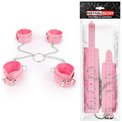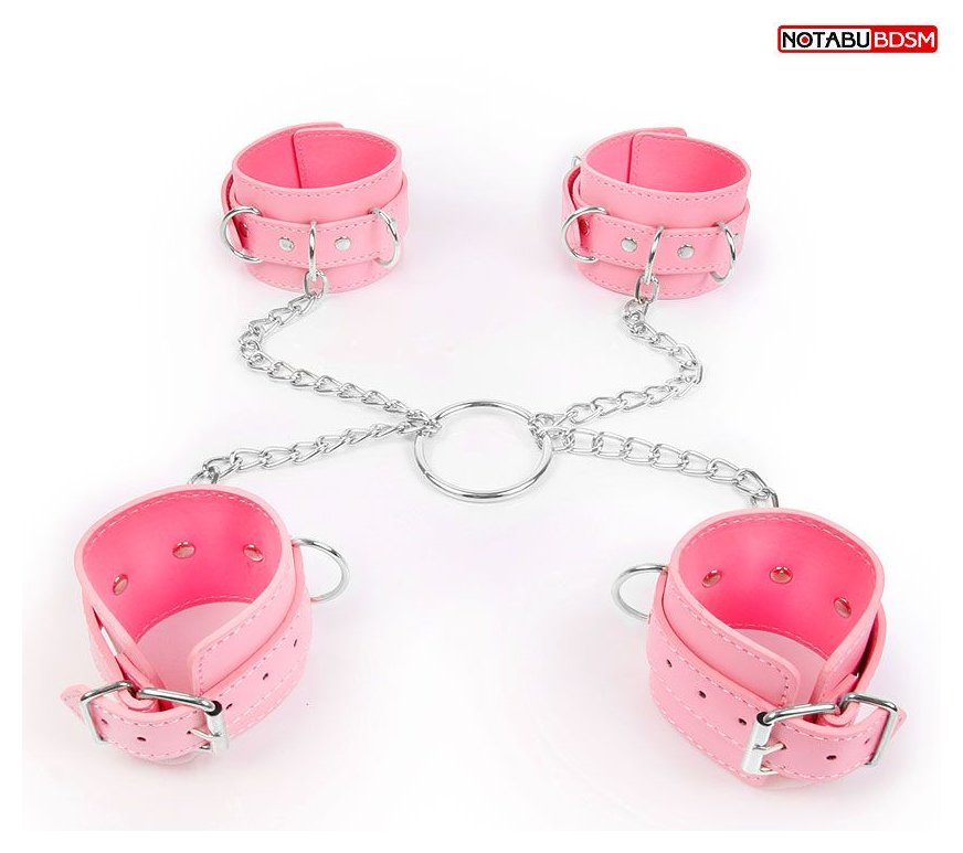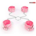 Комплект розовых наручников и оков на металлических креплениях с кольцом