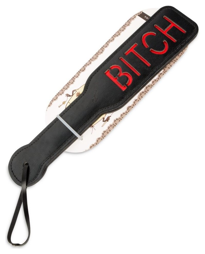 Сегодня будет больно! Вы готовы ощущать на своей попке шлепки? Яркий девайс для ролевых игр, который понравится не только опытным любителям, но и новичкам. Шлёпалка выполнена из кожи и украшена контрастной надписью Bitch. Забудьте о предрассудках и позвольте своему партнеру отшлёпать вас – кто знает, кому это понравится больше! Ширина - 6,5 см.