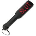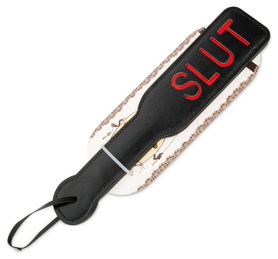 Стильная кожаная шлепалка для самой настоящей порки. У вас точно не устанет рука:) А ваш партнер будет доволен! Декорирована строчкой и вырезанной надписью. Прекрасно будет смотреться в качестве атрибута для БДСМ. Ширина - 6,5 см.