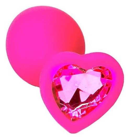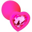 Розовая анальная пробка из силикона с розовым кристаллом в форме сердца - 8,8 см