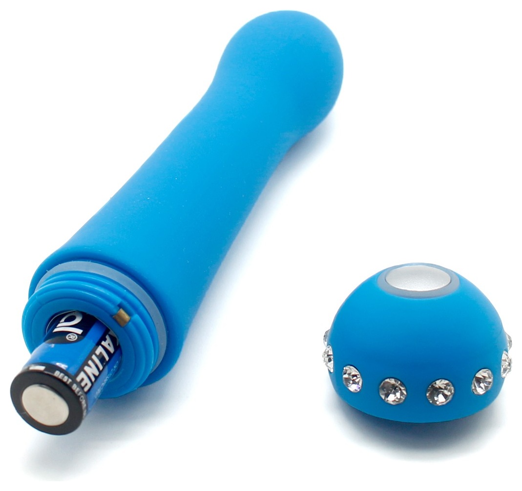 Аккуратный вибратор небольшого размера. Изготовлен из нежнейшего силикона, бархатистого на ощупь, украшен стразами. Имеет 10 режимов вибрации, которые регулируются кнопкой в основании игрушки. Рабочая длина - 12 см.