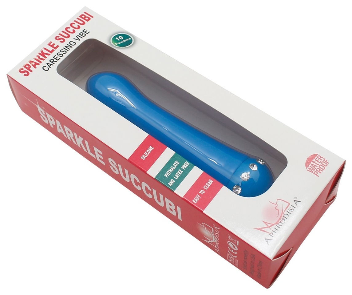 Голубой вибратор SPARKLE SUCCUBI BLISS CARESSING VIBE - 14,2 см