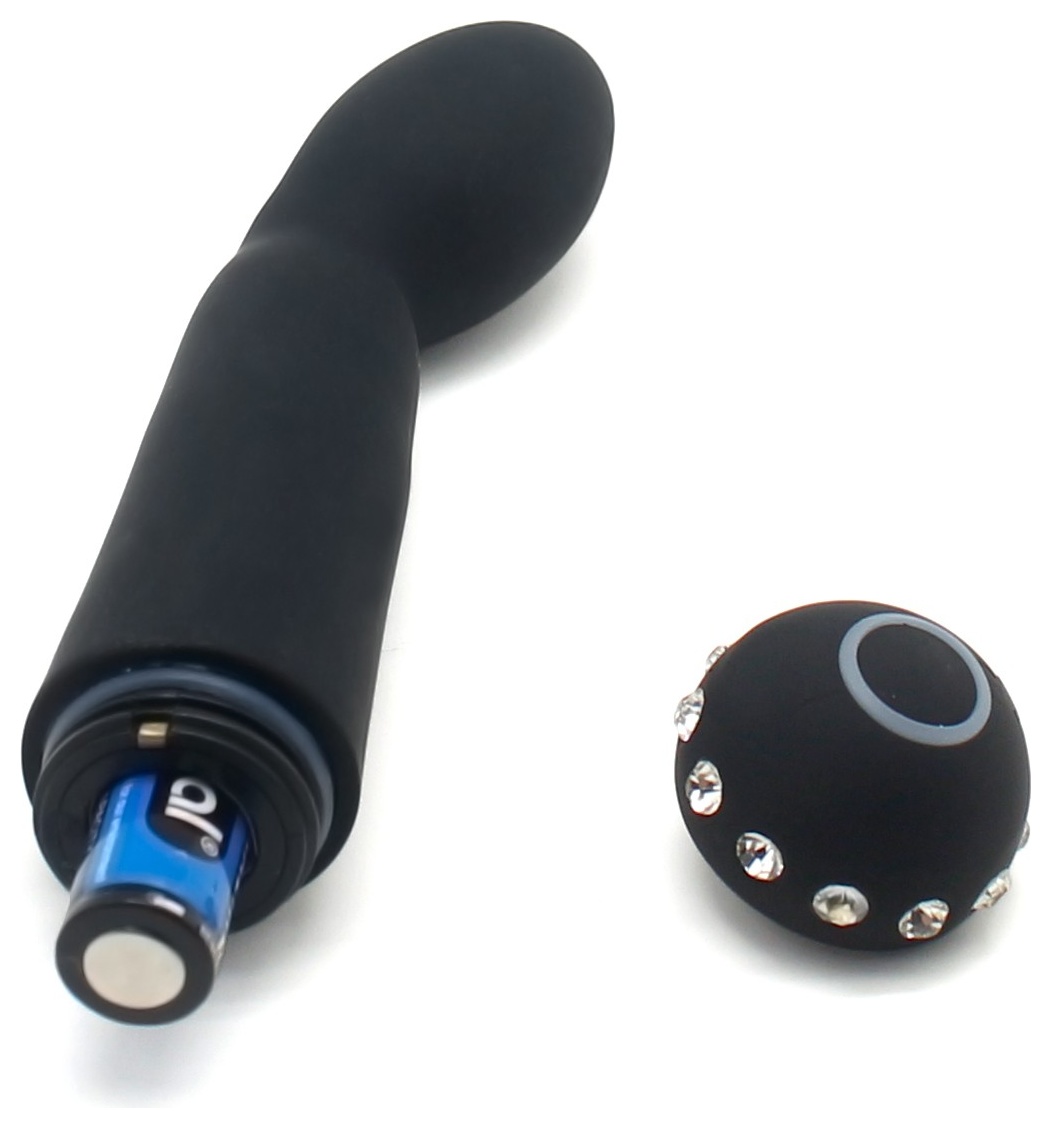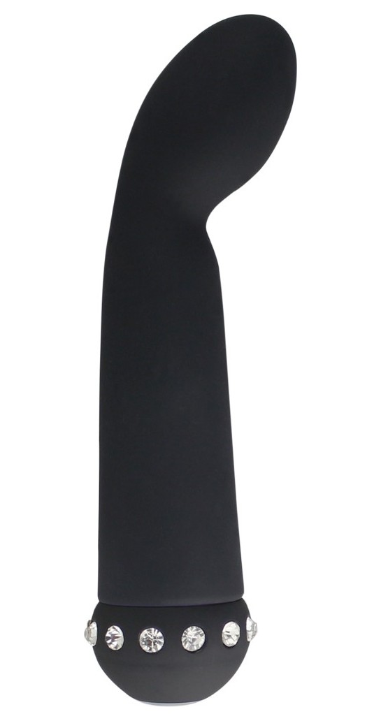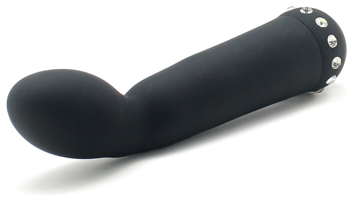 Аккуратный вибратор небольшого размера идеально подойдет для стимуляции точки G благодаря своей изогнутой форме. Изготовлен из нежнейшего силикона, бархатистого на ощупь, украшен стразами. Имеет 10 режимов вибрации, которые регулируются кнопкой в основании игрушки. Рабочая длина - 12 см.