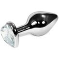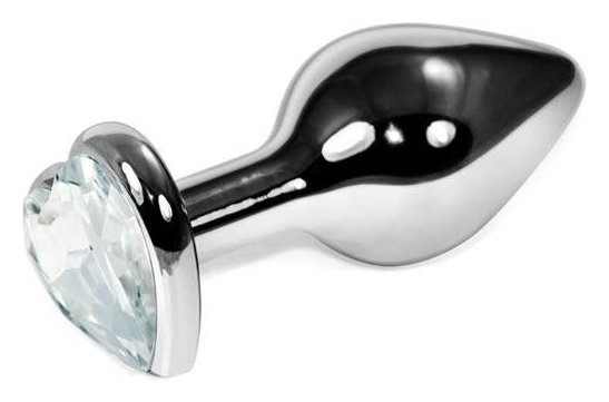 Серебристая анальная пробка с прозрачным кристаллом-сердечком - 6,8 см