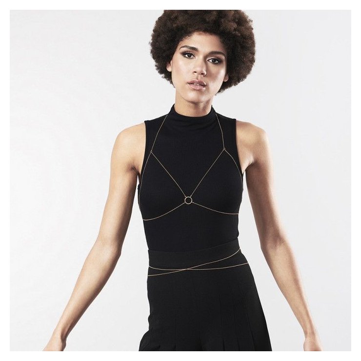 Изящная цепочка, повторяющая очертания груди, идеально подойдет к вашему любимому наряду, комплекту белья и будет великолепно смотреться на обнаженной коже. Помните, что цепочка от Bijoux Indiscrets может быть как модным аксессуаром, так и прекрасным эротическим дополнением к вашей игре. Наденьте цепочку на шею и отрегулируйте верхнюю часть так, чтобы треугольники из тонкой цепочки обрамляли вашу грудь. Оставшуюся часть нити оберните вокруг талии и закрепите сзади с помощью специальной застежки. При необходимости отрегулируйте длину. Аксессуары, на которые создателей вдохновили нью-йоркские танцовщицы кабаре 1920-х годов – неординарные, чувственные и эффектные женщины. Все цепочки в коллекции регулируются с помощью специальных застежек-фиксаторов, а значит способны украсить тело каждой покупательницы. Такой аксессуар, преподнесенный в дизайнерской упаковке, станет идеальным подарком для любой женщины. Используйте смелые решения - сочетайте украшение со светящимися стикини и бельем без бретелек. Цепочка от фирмы Bijoux Indiscrets подчеркнет вашу женственность и привлечет внимание к самым чувственным областям вашего тела. Элегантное украшение, чтобы заявить о себе, и изящный способ разнообразить вашу интимную жизнь.