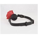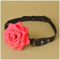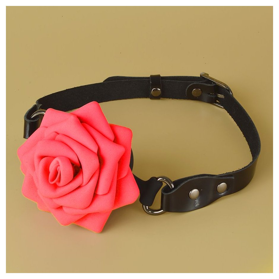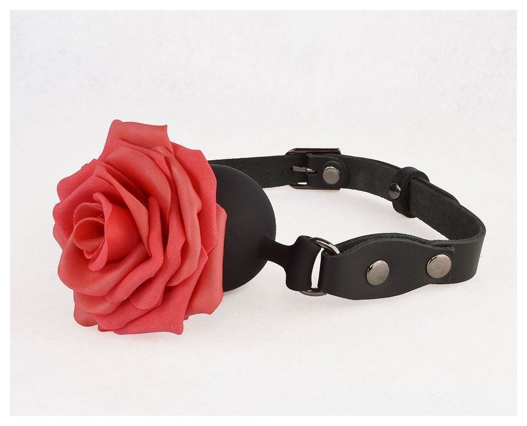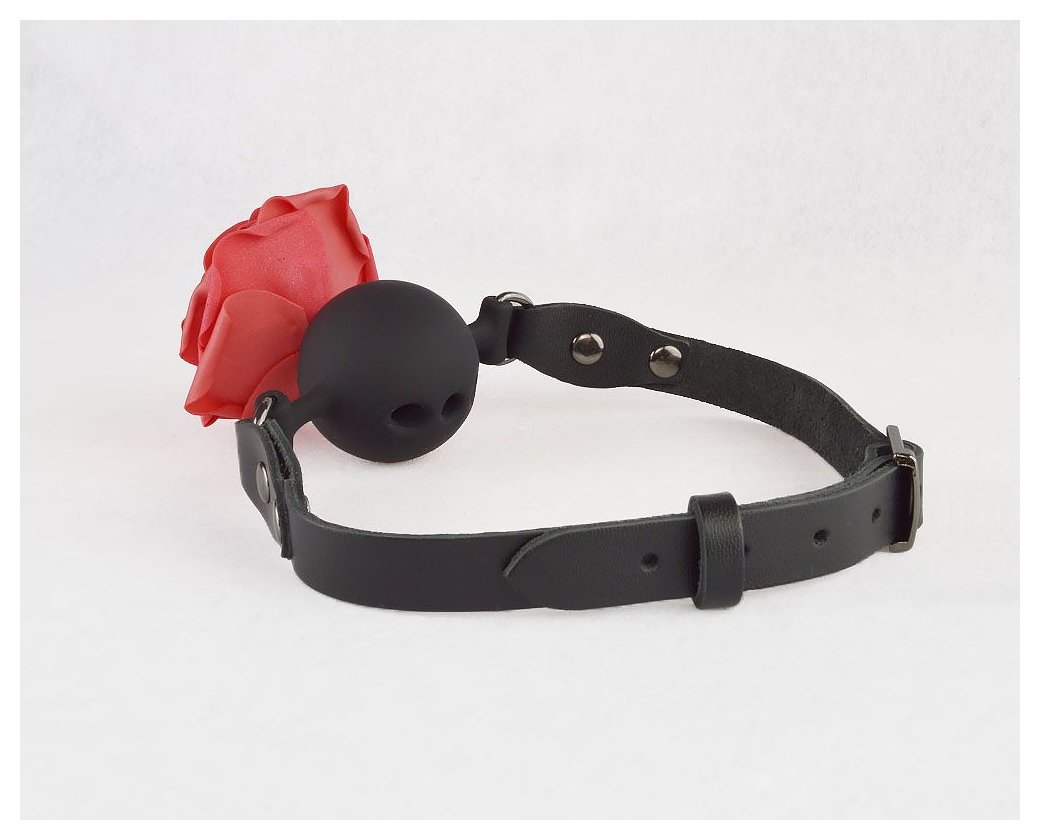 Кляп-шар изготовлен из силикона. Ремешки из натуральной кожи черного цвета. Фурнитура имеет никелевое покрытие. Роза изготовлена из фоамирана. Диаметр шара - 4,4 см.