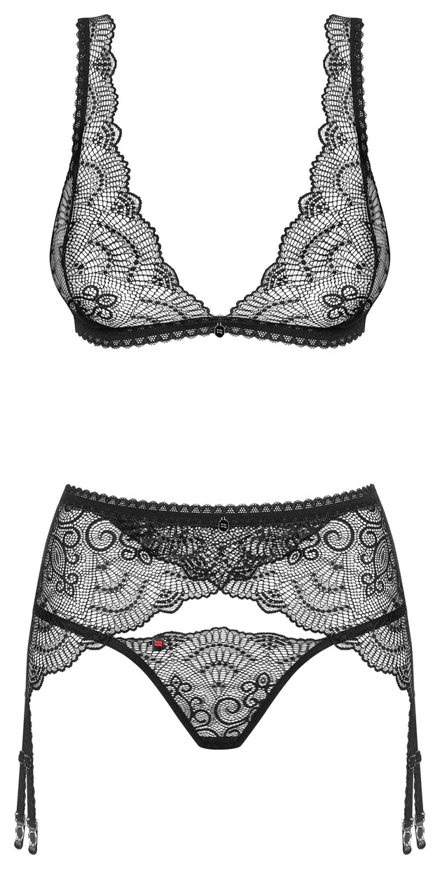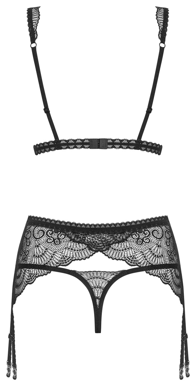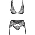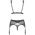Роскошный кружевной комплект нижнего белья Firella состоит из бюстгальтера, стрингов и пояса для чулок. Бюстгальтер с мягкими чашками без косточек, застегивается на крючки-петли. Бретели и пажи регулируются по длине. В комплекте: бюстгальтер, трусики-стринги, пояс для чулок.