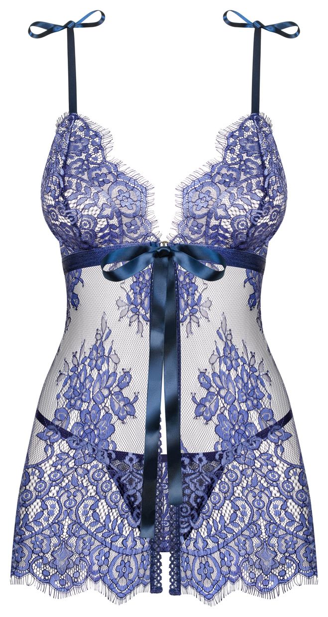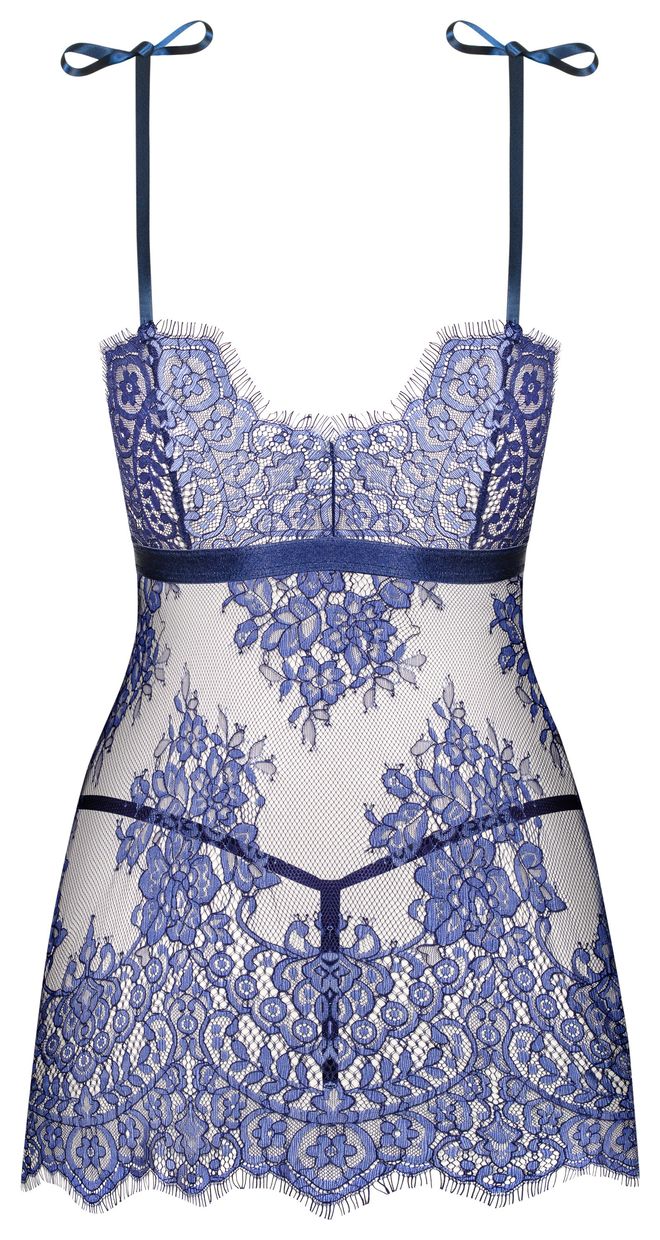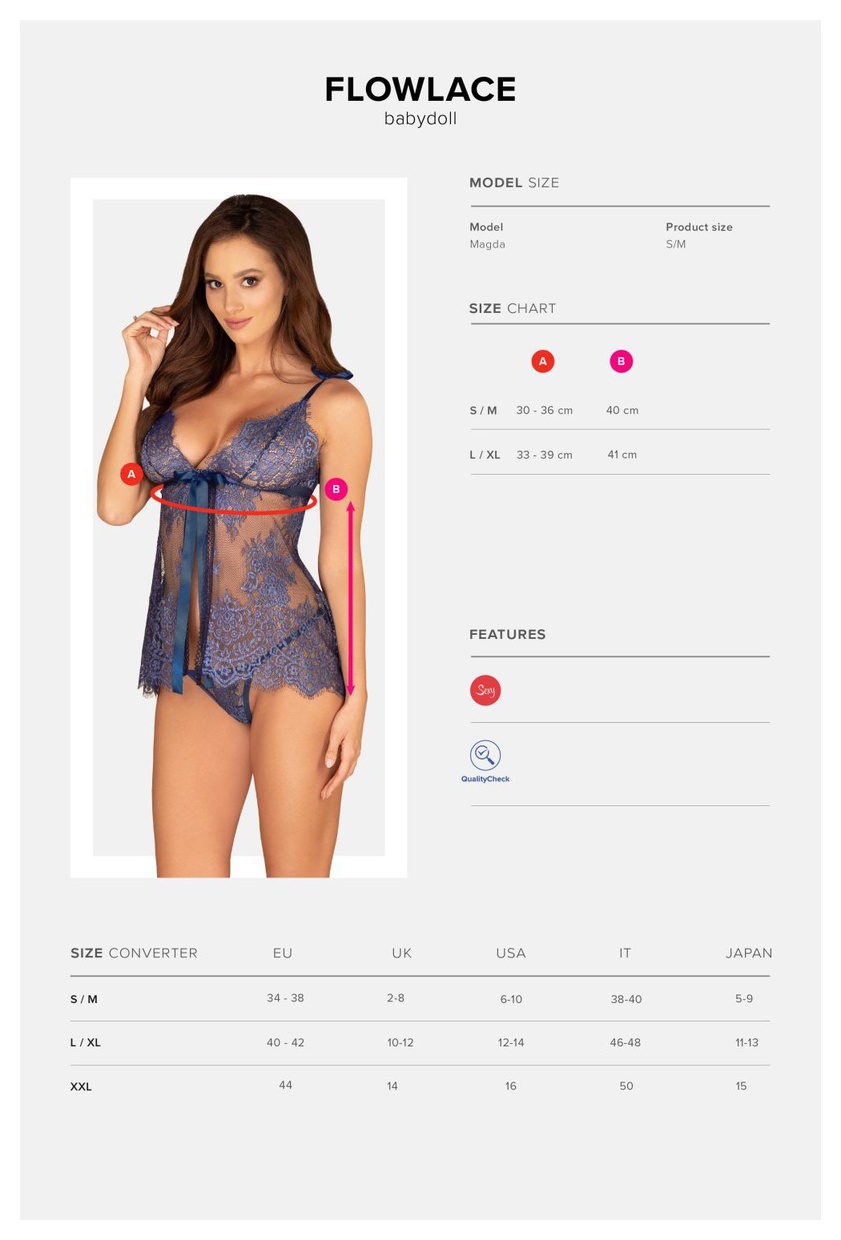Роскошная кружевная сорочка беби-долл Flowlace. Лиф мягкий без косточек. Бретели на завязках. Между чашек застежка на крючок и атласный бант с длинными лентами. В комплекте: сорочка и трусики-стринги.