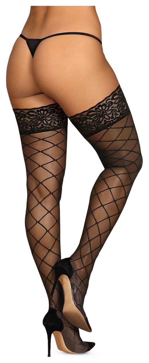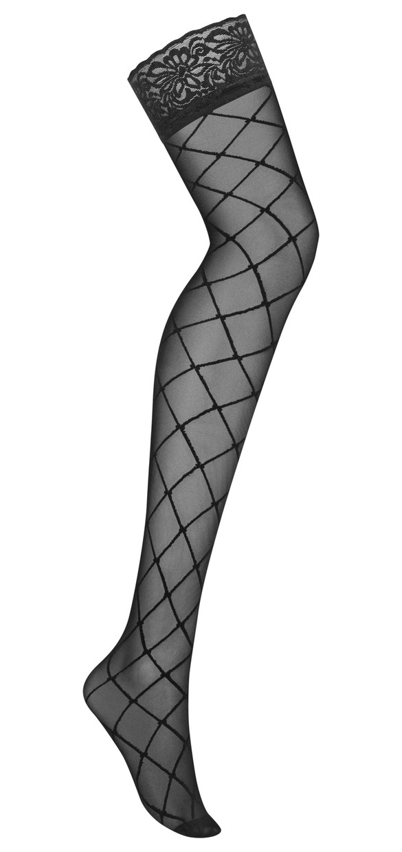Женские чулки с узором в крупную сетку, кружевная резинка с силиконовыми полосками.