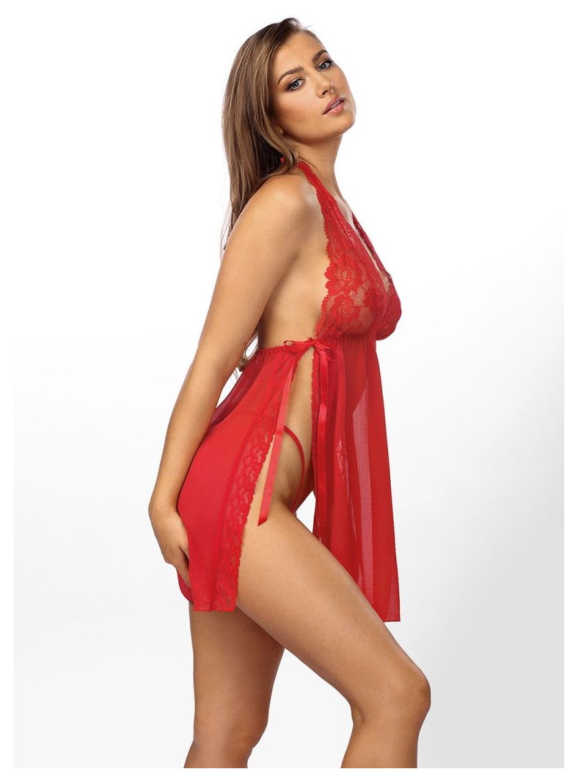 Женская эротическая сорочка Belinda выполнена из тюля. Чашки лифа декорированы кружевом. В комплекте: сорочка и трусики-стринги.