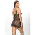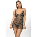 Женская сорочка из полупрозрачной сеточки с звездным узором. Длина бретелей регулируется. В комплекте: сорочка и трусики-стринги. Пэстисы в комплект не входят!