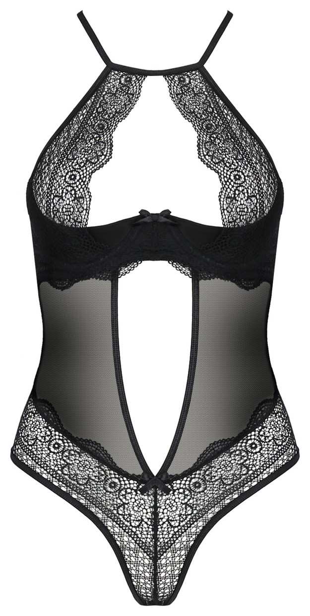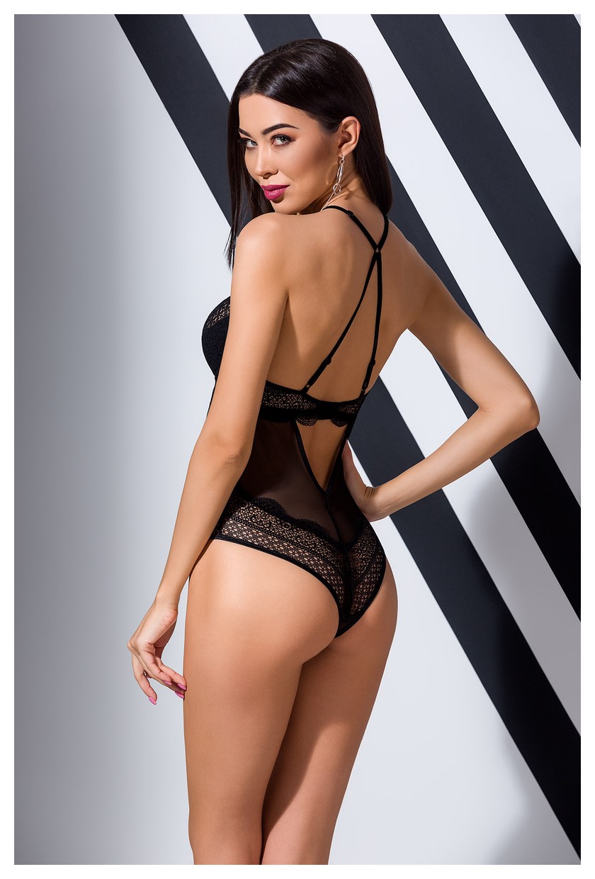 Соблазнительное боди Yona выполнено из мягкой сеточки и эластичного кружева. Полуоткрытые чашки на косточках усилены поролоном для лучшей посадки груди. Регулируемые бретели изящно перекрещены на спинке.