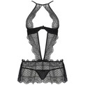Откровенная сорочка Yona выполнена из эластичного кружева. Полуоткрытые чашки на косточках усилены поролоном для лучшей посадки груди. Регулируемые бретели изящно перекрещены на спинке. В комплекте: сорочка и трусики-стринги.