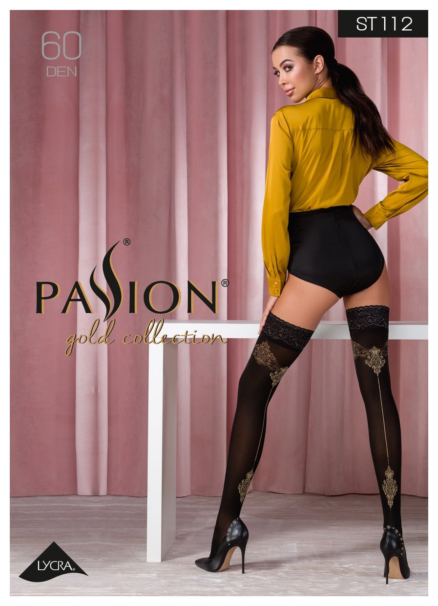 Чулки черные с элегантным кружевным поясом и золотым узором. Чулки станут элегантным дополнением к любому наряду, а в нужный момент подчеркнут страстность вашей натуры и помогут вскружить голову вашему кавалеру. Элегантный кружевной пояс с золотистым узором завершат ваш неповторимый образ.