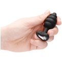 Черная анальная пробка Regular Ribbed Diamond Heart Plug - 7 см