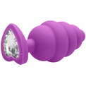 Фиолетовая анальная пробка Large Ribbed Diamond Heart Plug - 8 см