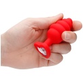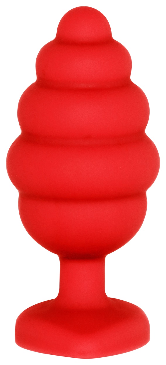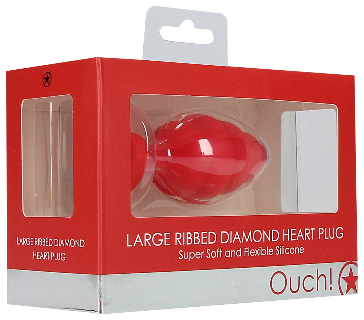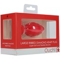 Красная анальная пробка Large Ribbed Diamond Heart Plug - 8 см