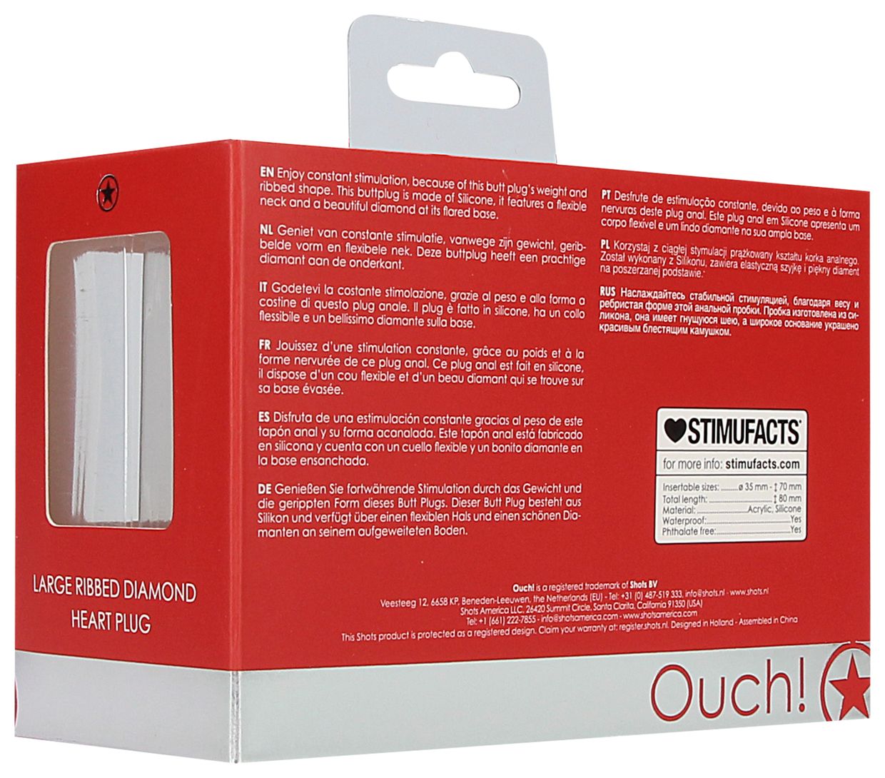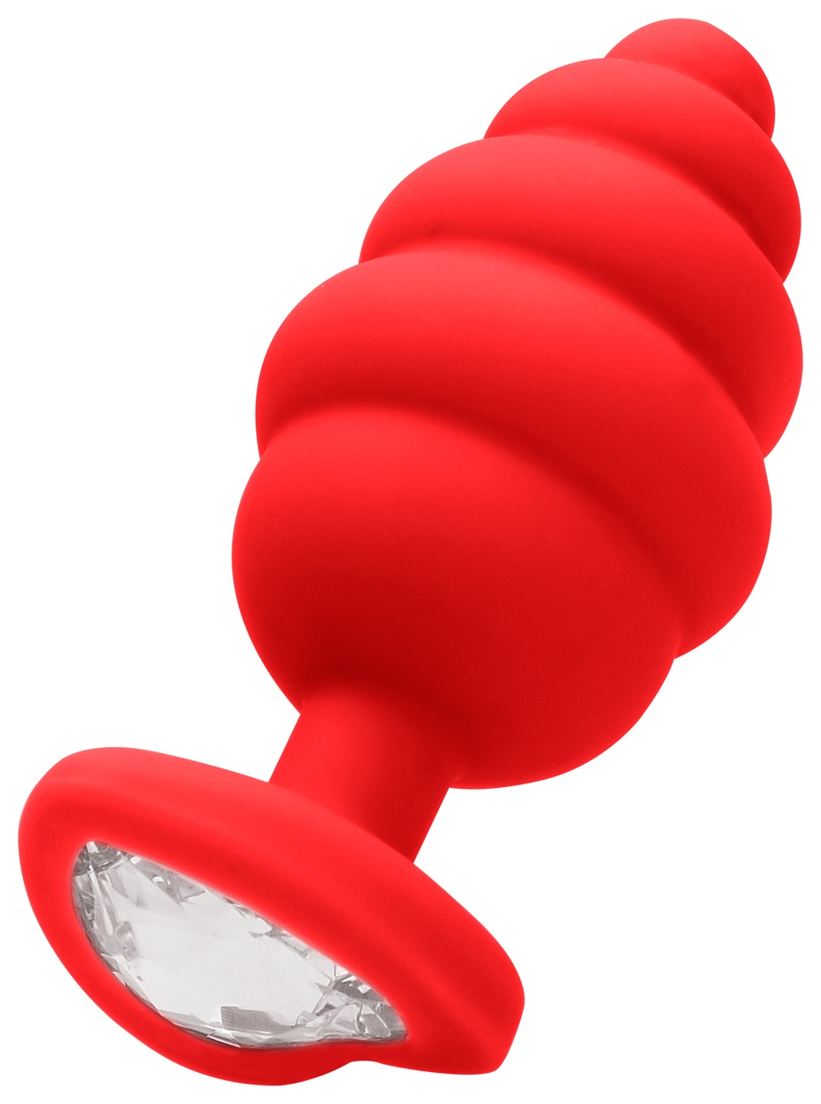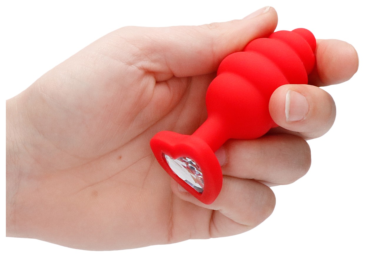Large Ribbed Diamond Heart Plug - роскошное силиконовое анальное украшение, состоящее из пяти ребер разного диаметра у проникающей части и декоративного украшения в виде кристалла в форме сердца, имитирующего бриллиант. Гладкая обтекаемая форма и небольшой закругленный кончик способствует комфортному проникновению и получению приятных тактильных ощущений. Идеальная игрушка, подходящая для сужения влагалища, подготовки к анальному сексу и украшению тела. Рабочая длина - 7 см.