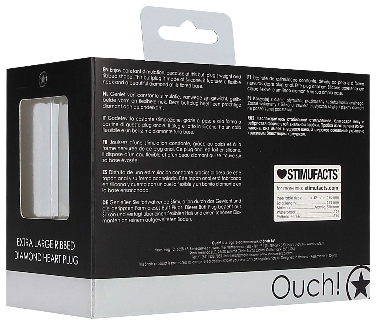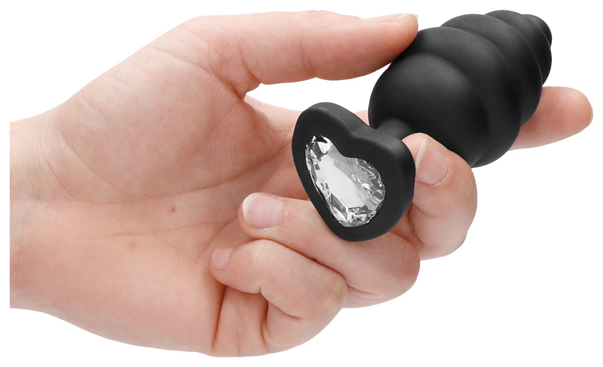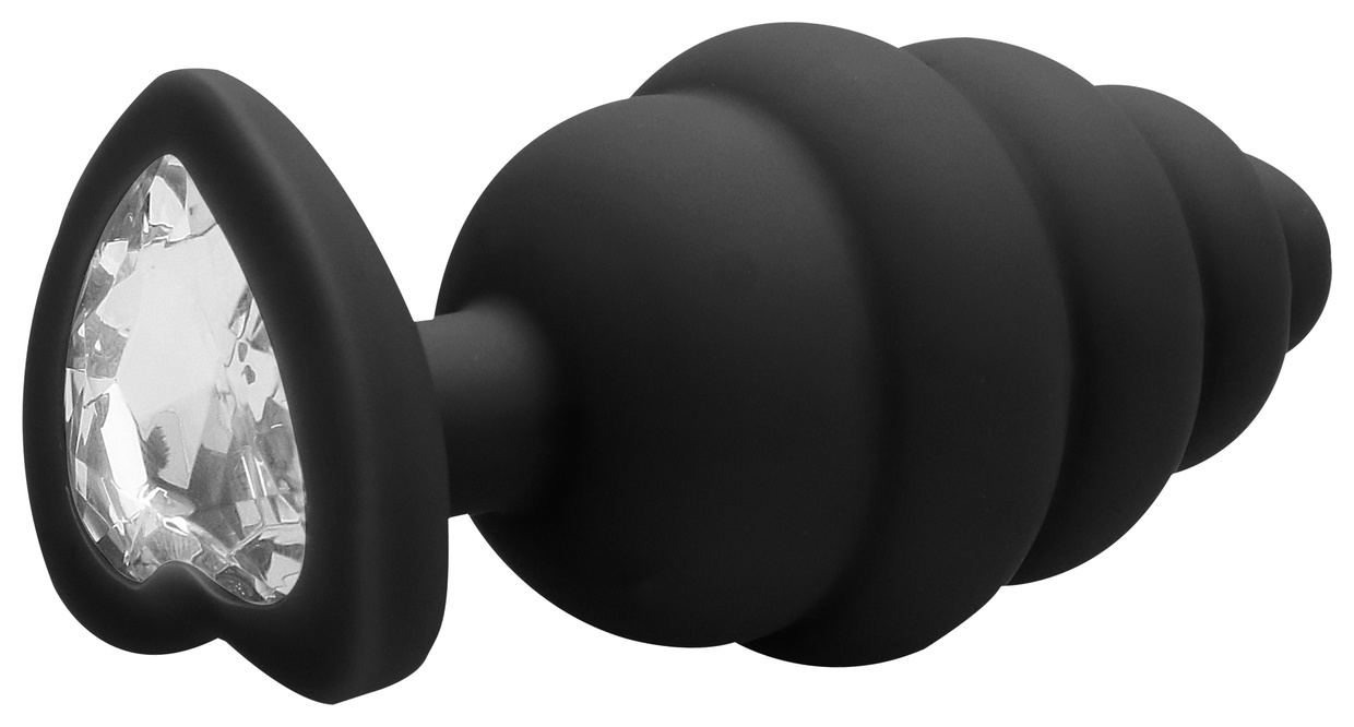 Extra Large Ribbed Diamond Heart Plug - роскошное силиконовое анальное украшение, состоящее из пяти ребер разного диаметра у проникающей части и декоративного украшения в виде кристалла в форме сердца, имитирующего бриллиант. Гладкая обтекаемая форма и небольшой закругленный кончик способствует комфортному проникновению и получению приятных тактильных ощущений. Идеальная игрушка, подходящая для сужения влагалища, подготовки к анальному сексу и украшению тела Рабочая длина - 8 см.