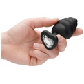 Черная анальная пробка Extra Large Ribbed Diamond Heart Plug - 9,6 см