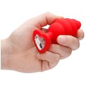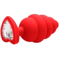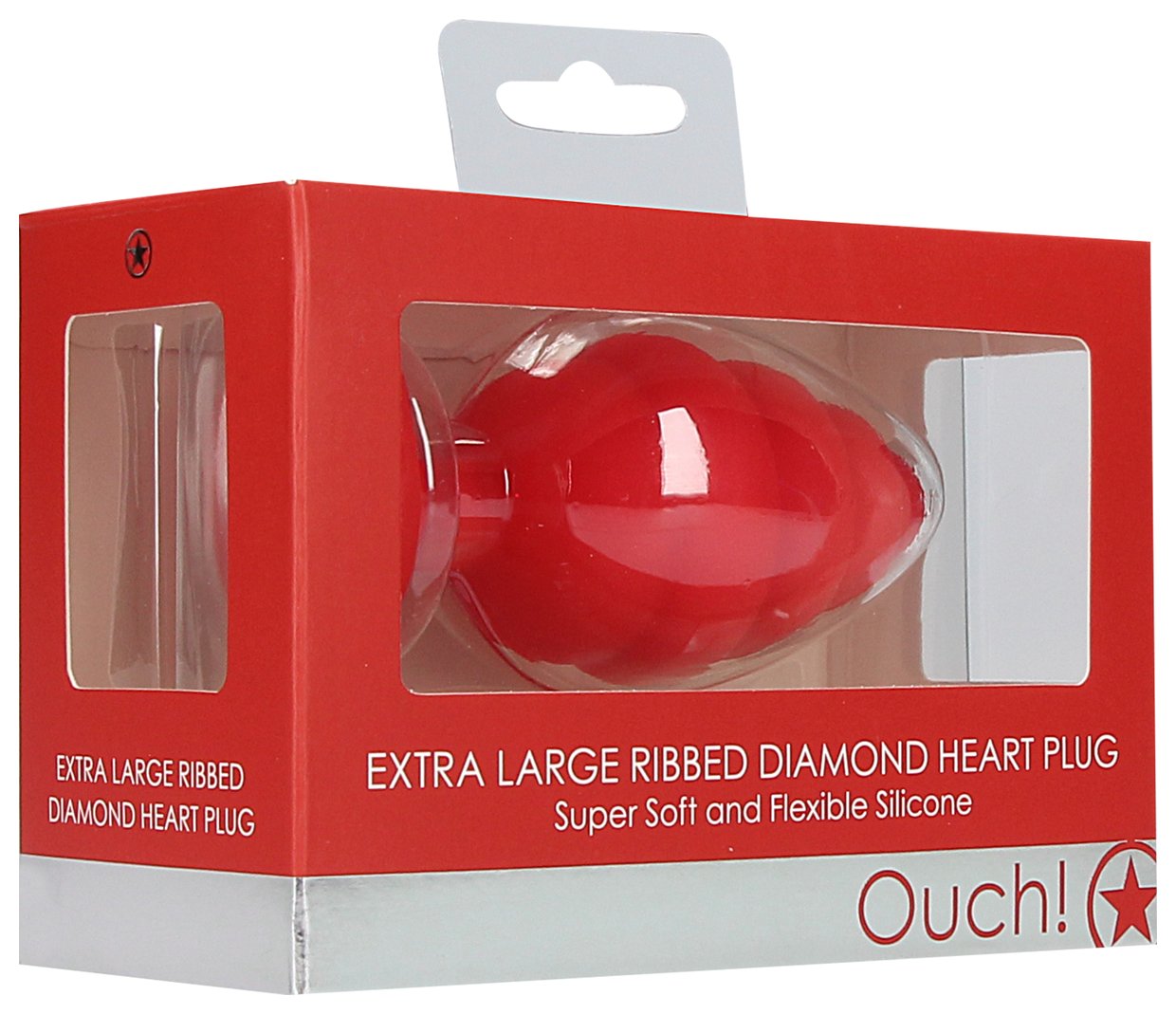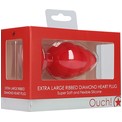 Красная анальная пробка Extra Large Ribbed Diamond Heart Plug - 9,6 см