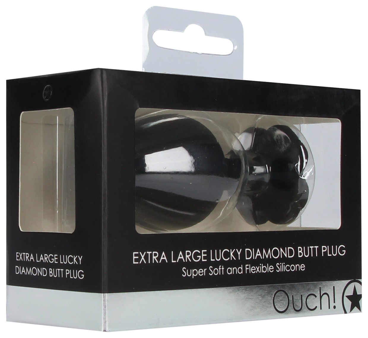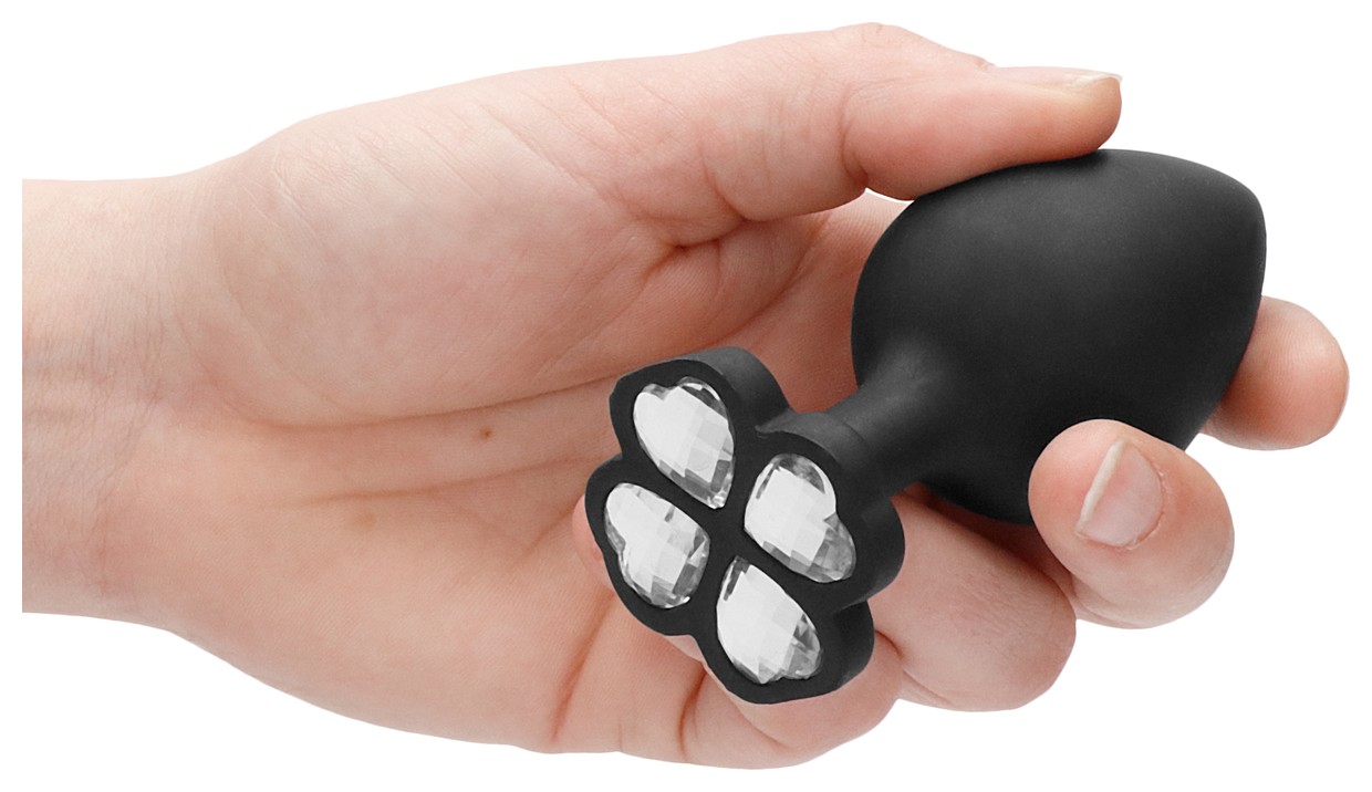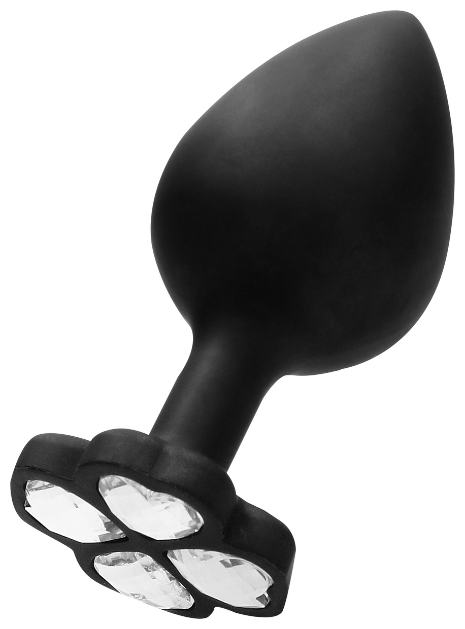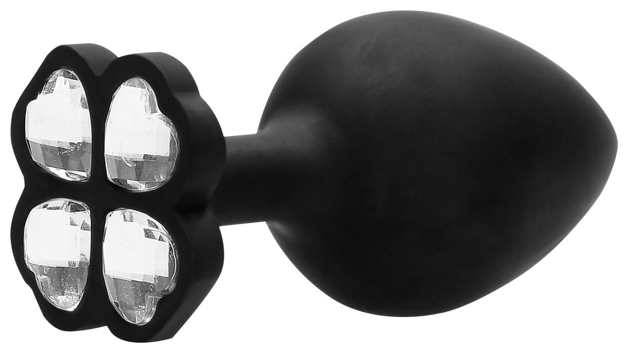 Черная анальная пробка с прозрачным кристаллом-клевером Lucky Diamond Butt Plug - 9,6 см