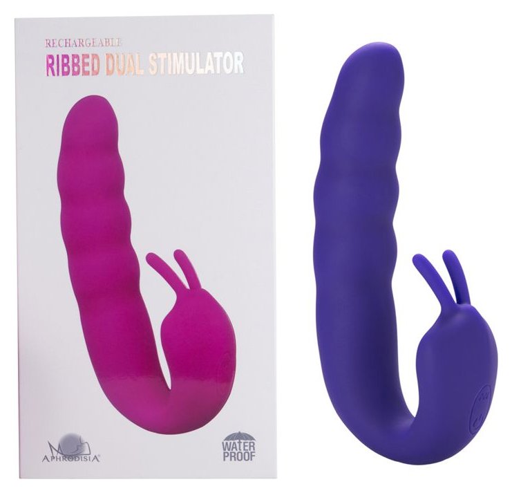 Фиолетовый вибратор Ribbed Dual Stimulator - 17 см