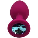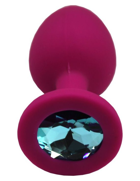 Малиновая анальная пробка с голубым кристаллом - 7,4 см