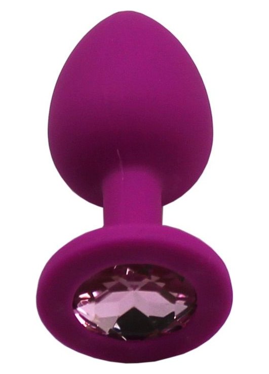 Пурпурная анальная пробка с розовым кристаллом - 7,4 см