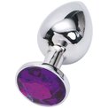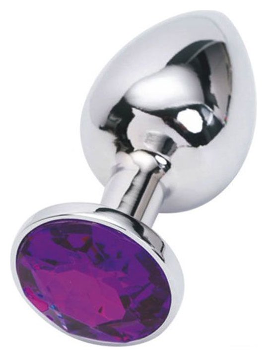 Серебристая анальная пробка из металла с фиолетовым стразом - 7 см