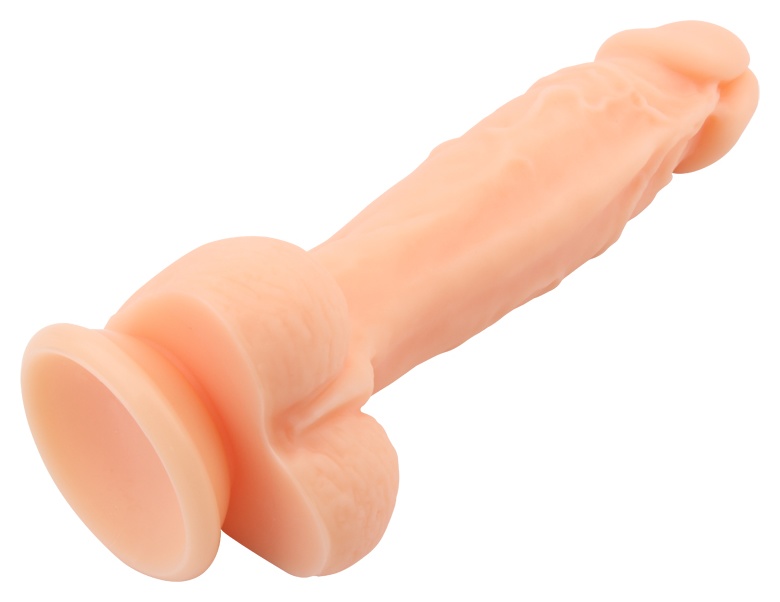 Фаллоимитатор с мошонкой на присоске. Ярковыраженная головка. Рабочая длина - 15 см.
