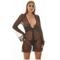 Шикарный пеньюар из прозрачного тюля Maxine на завязках украшен кружевными вставками на талии и на манжетах. Трусики не входят в комплект!