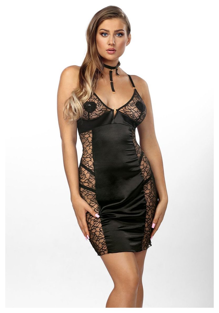 Эротическая сорочка Spirit. Чашки, боковые части и спина состоят из шикарного кружева с цветочным мотивом, на спине декоративное кольцо. Трусики и чокер не входят в комплект!