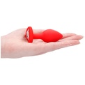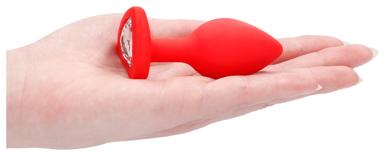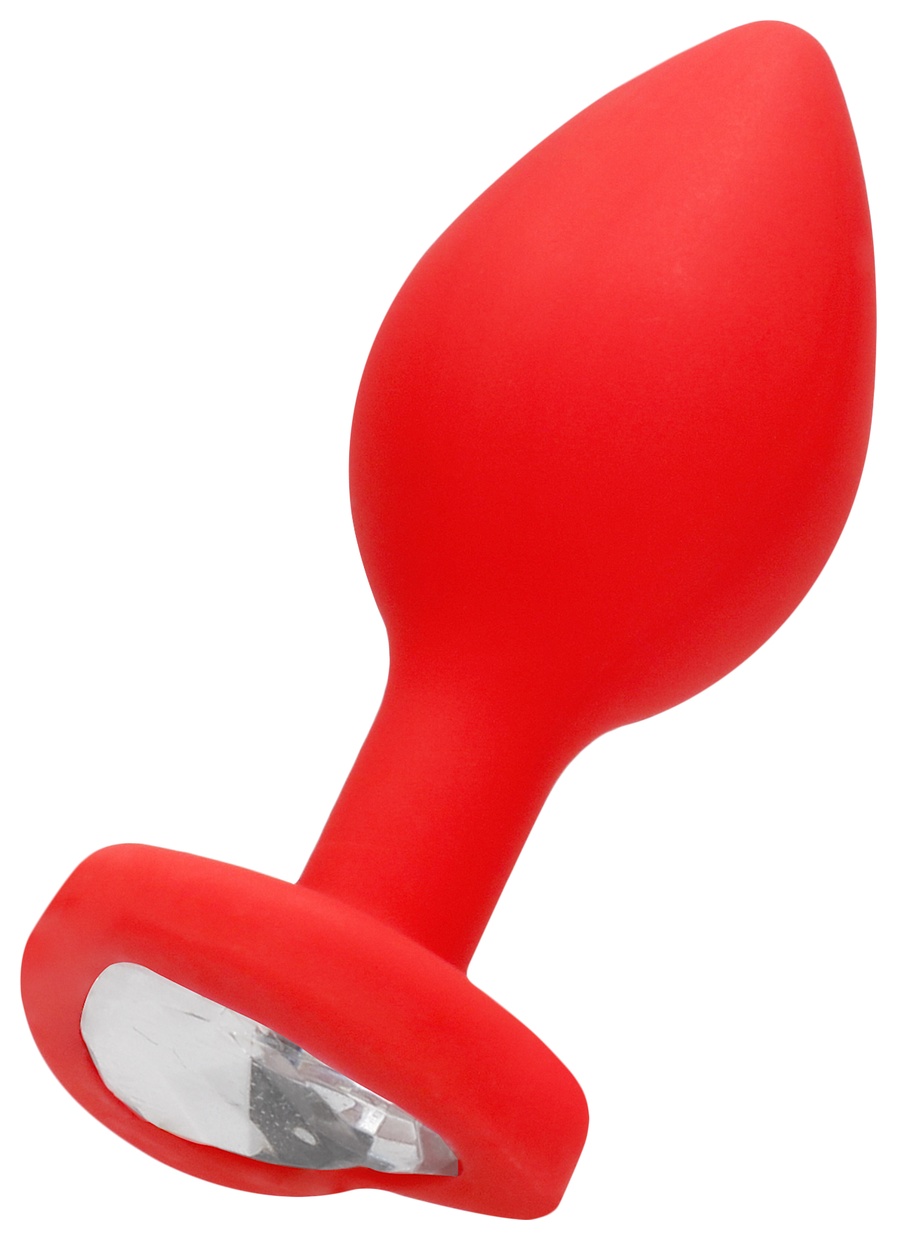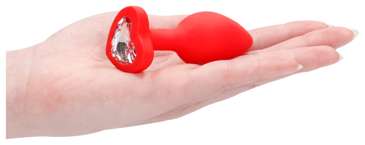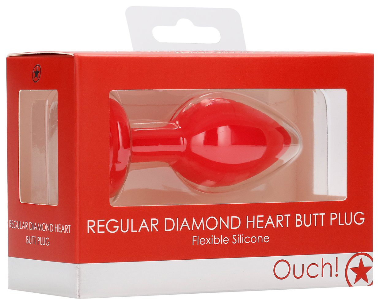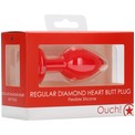Красная анальная пробка с прозрачным стразом Diamond Heart Butt Plug - 7,3 см