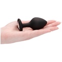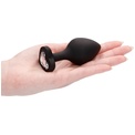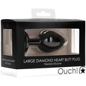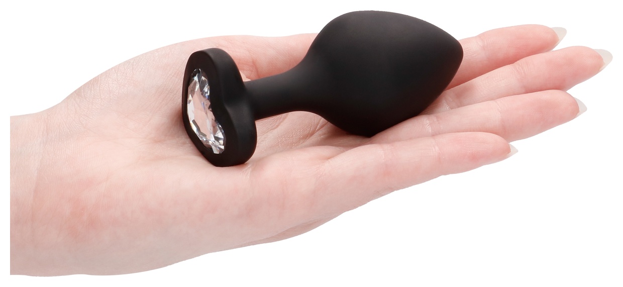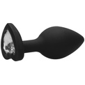 Черная анальная пробка с прозрачным стразом Large Ribbed Diamond Heart Plug - 8 см