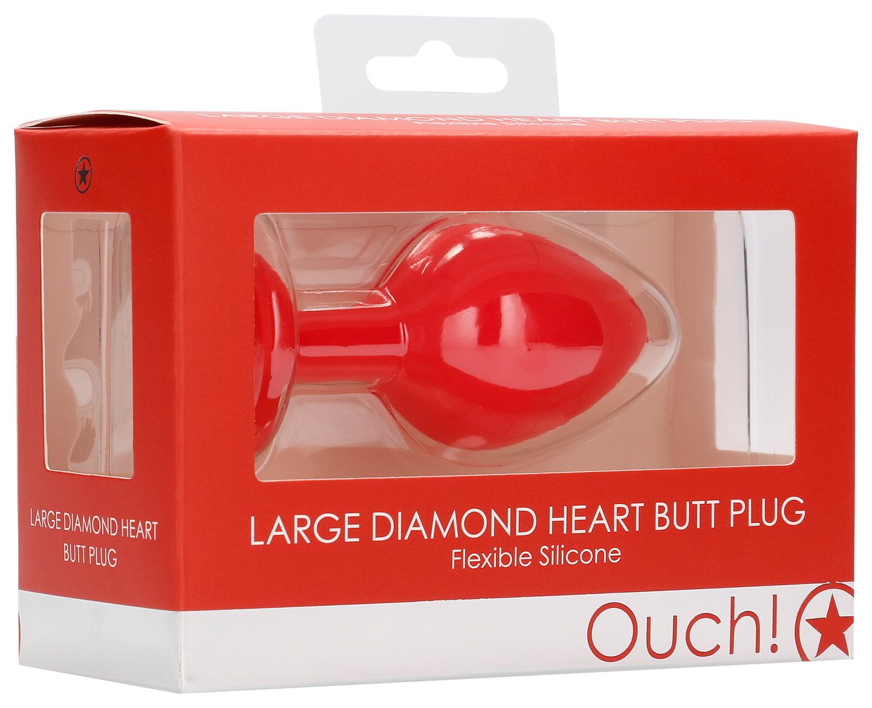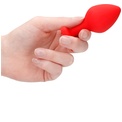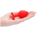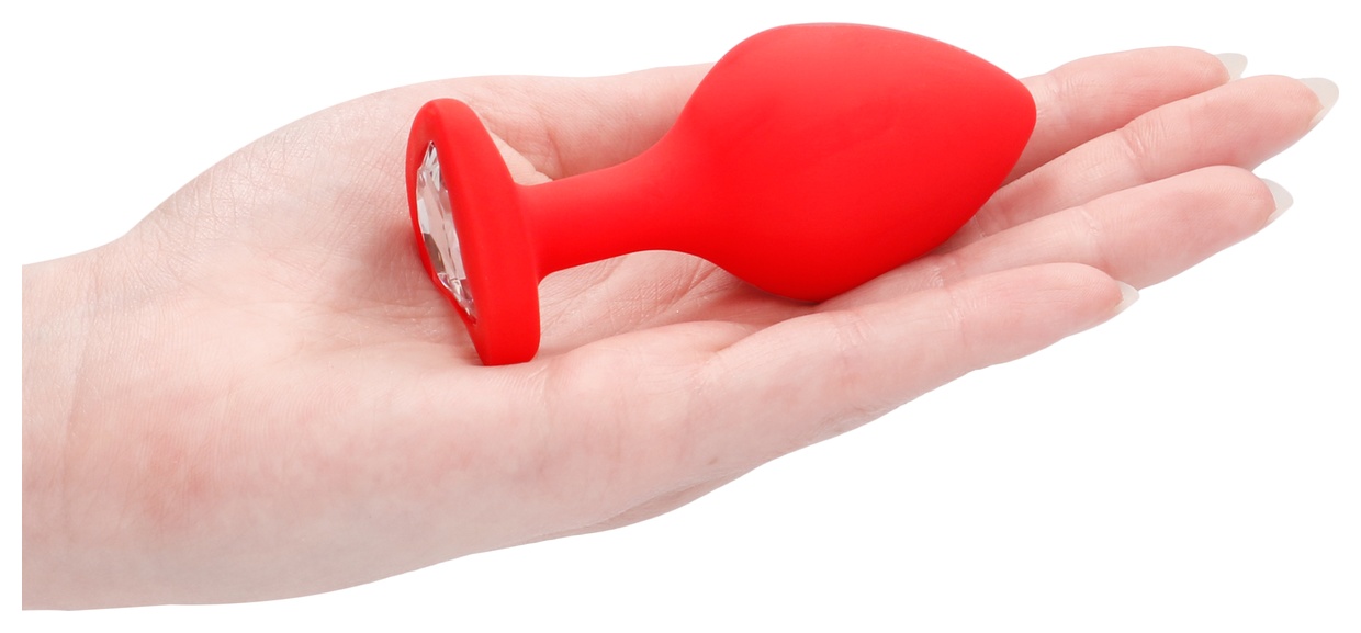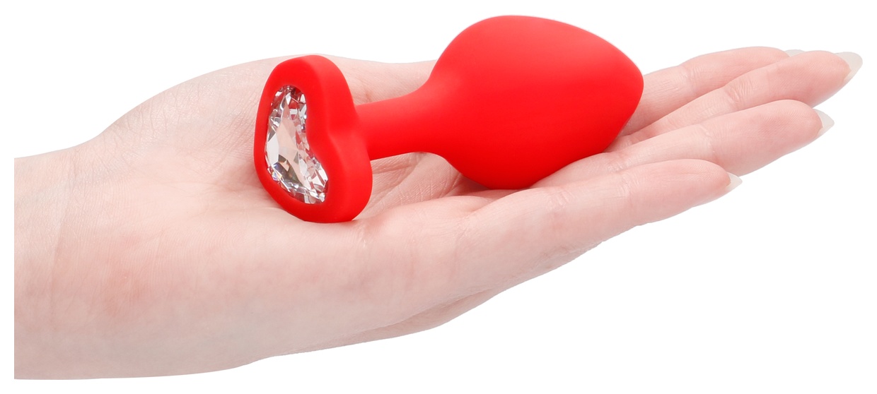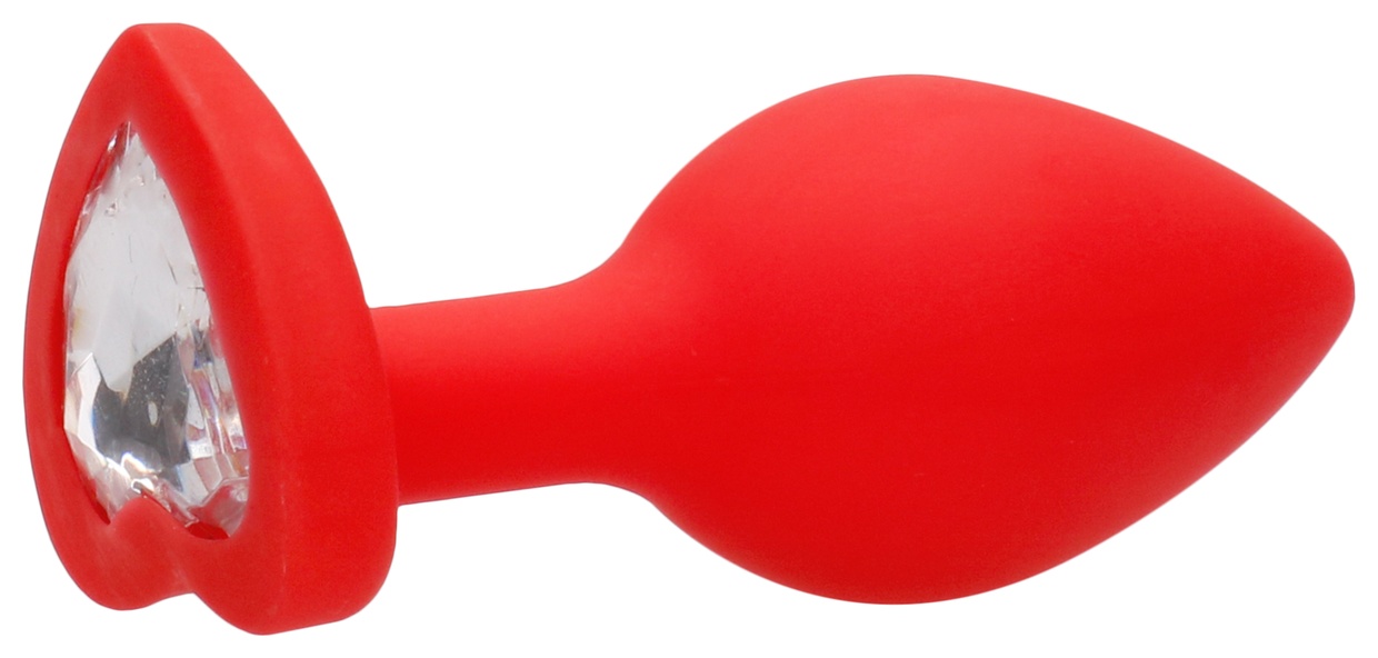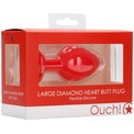 Красная анальная пробка с прозрачным стразом Large Ribbed Diamond Heart Plug - 8 см
