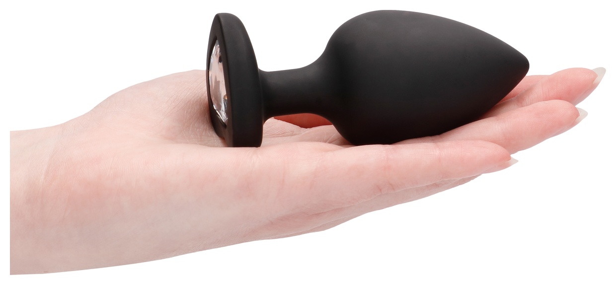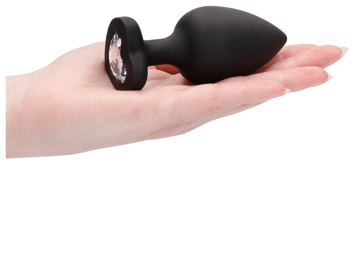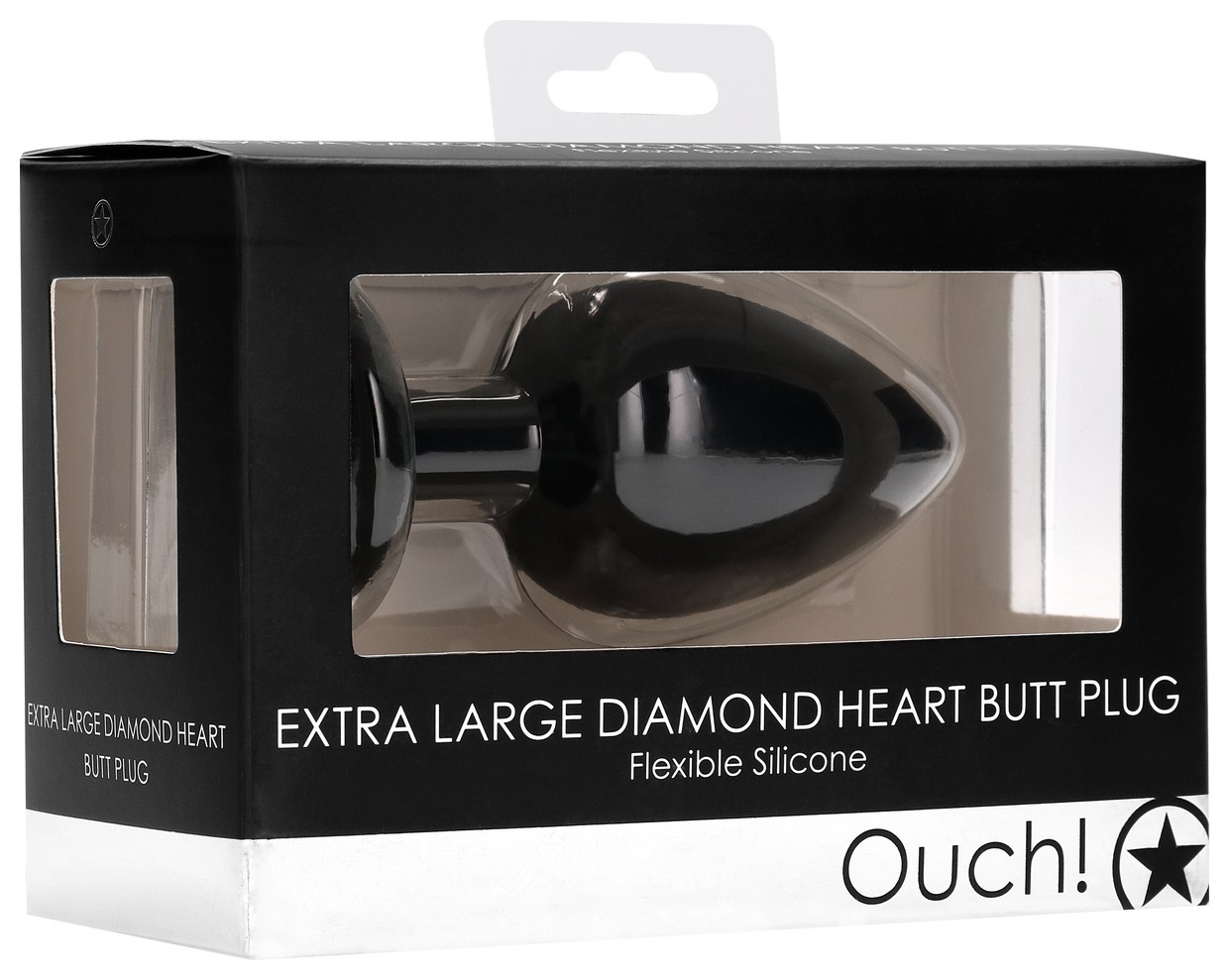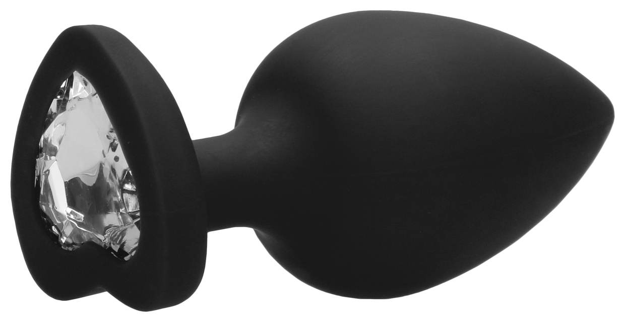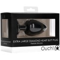 Черная анальная пробка с прозрачным стразом Extra Large Diamond Heart Butt Plug - 9,5 см