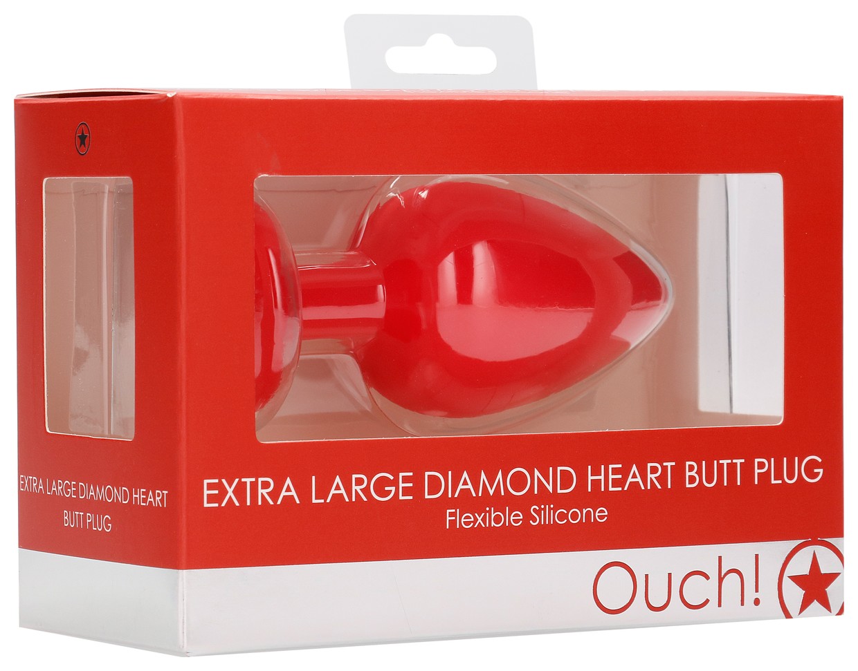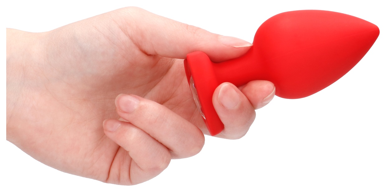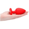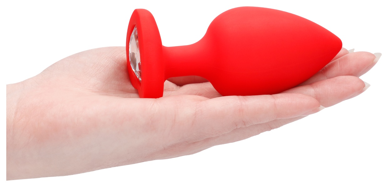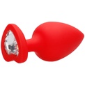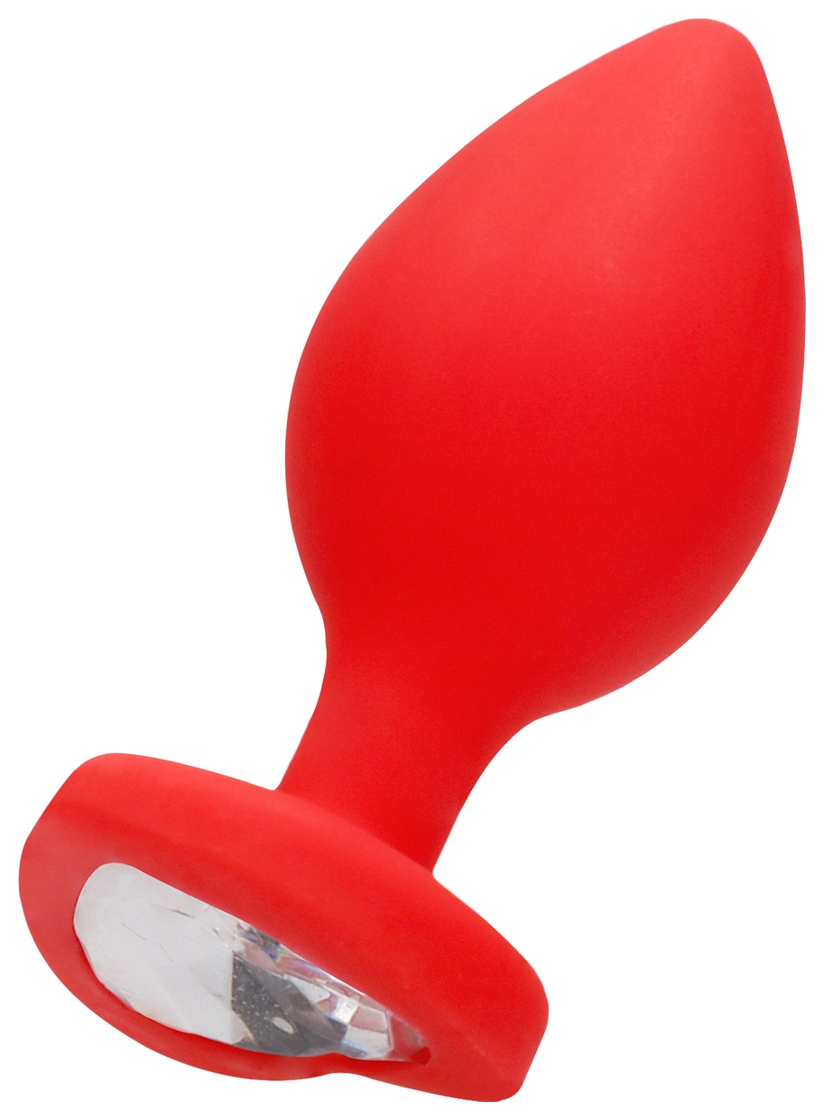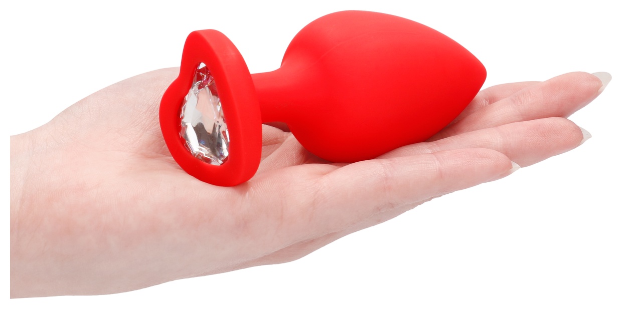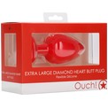 Красная анальная пробка с прозрачным стразом Extra Large Diamond Heart Butt Plug - 9,5 см