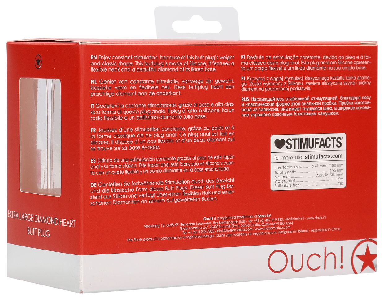 Extra Large Diamond Heart Butt Plug- анальная пробка классической формы с прозрачным кристаллом (стразом)в форме сердца в основании. Идеально подходит для стимуляции, украшения тела, сужения влагалища, подготовки к анальному сексу. Рабочая длина - 8 см.