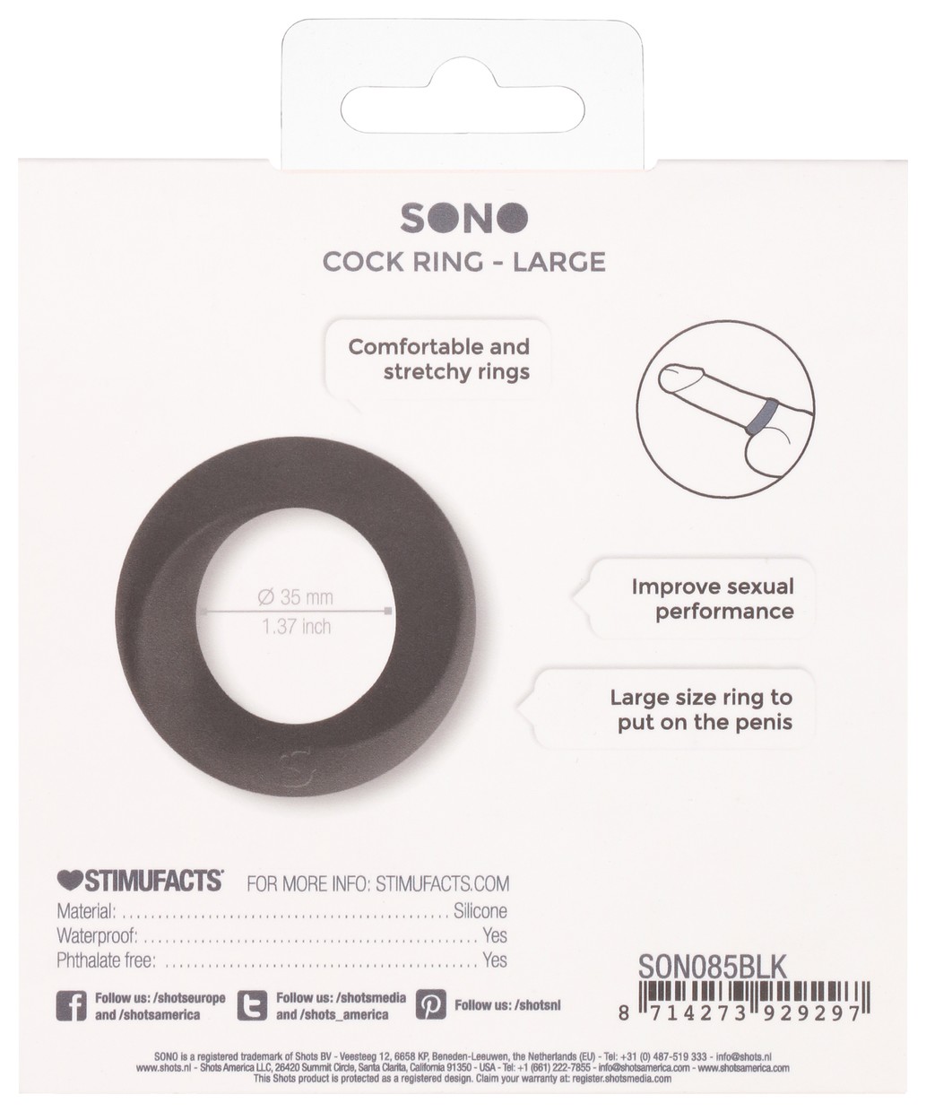 N 85 Cock Ring – эрекционное кольцо из гипоаллергенного, эластичного, не содержащего фталатов силикона. Кольцо имеет спиралевидную форму для предотвращения скольжения. Кольцо можно закрепить на основании члена, что будет надежно препятствовать оттоку крови. Либо его можно одеть на мошонку, что обеспечивает утяжку яичек, дополнительно замедляя процесс эякуляции. Внутренний диаметр - 3,5 см.