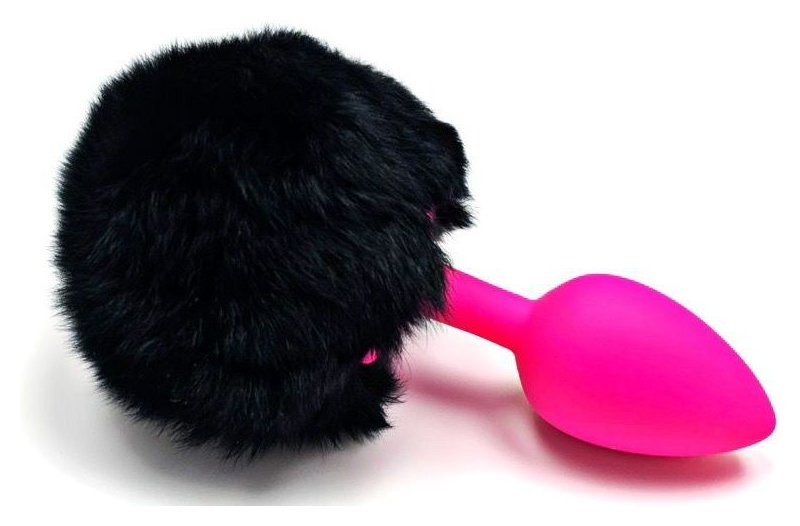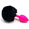 Розовая анальная пробка с пушистым черным хвостиком зайки