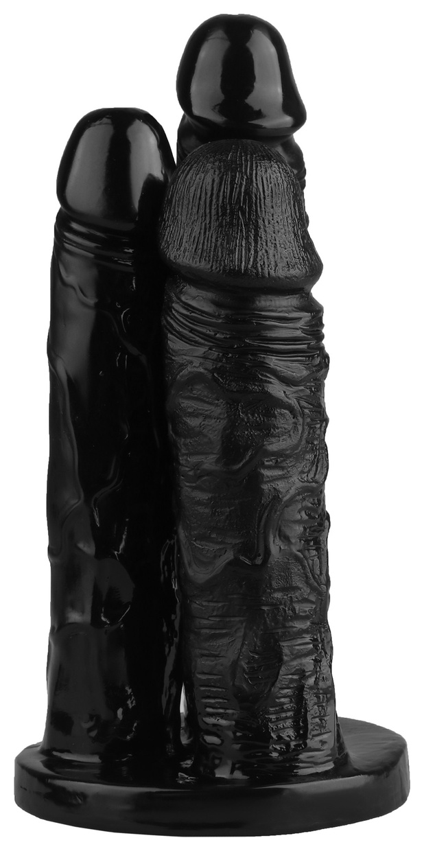 Черный тройной фаллоимитатор - 24 см