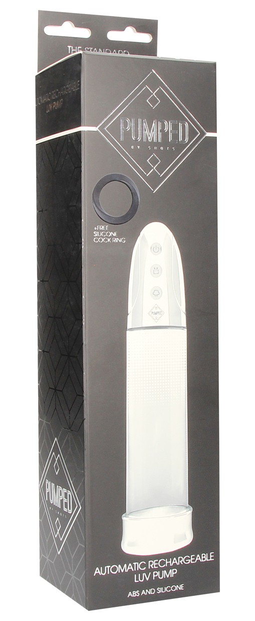 Rechargeable Luv Pump - перезаряжаемая автоматическая вакуумная помпа с 3 скоростями всасывания. Клинические исследования доказали, что вакуумные устройства обеспечивают более твердую эрекцию, а также при регулярном использовании увеличение полового органа. Согласно Американской урологической ассоциации, они могут быть также полезны в случаях, когда не помогли препараты на основе фосфодиэстеразы 5 типа, такие как виагра. Вакуумная помпа является безопасным и эффективным методом для профилактики эректильной дисфункции. Для получения максимального эффекта использование помпы должно быть регулярным. Будьте аккуратны и внимательны при работе с вакуумом. Автоматическое управление и мягкая прочная втулка предназначены для создания идеального уплотнения и мощного всасывания. Для быстрого и мгновенного сброса давления есть кнопка предохранительного клапана, так что никаких сюрпризов не будет! Помпа заряжается через специальный аккумуляторный USB кабель и может быть подключен практически в любом месте. Просто подсоедините идущий в комплекте шнур к изделию и совместимому порту компьютера или USB-адаптера (приобретается отдельно). Полная зарядка занимает 120 минут, ее достаточно для беспрерывной работы в течение 120 минут. Рабочая длина - 20 см. В комплекте: помпа, эрекционное кольцо.