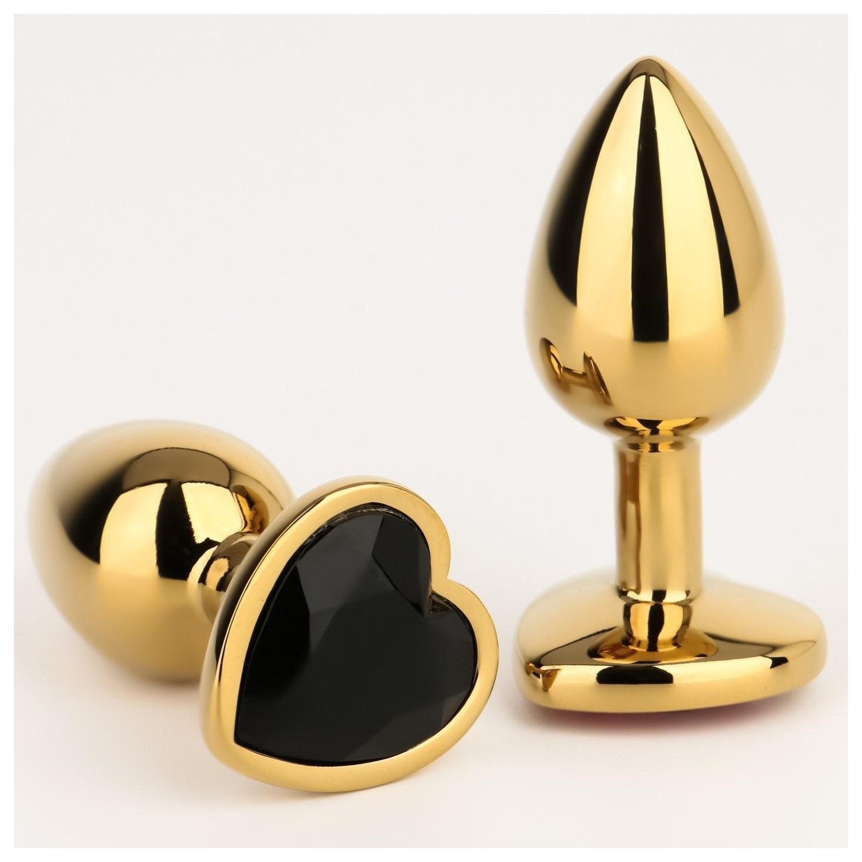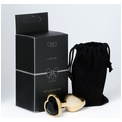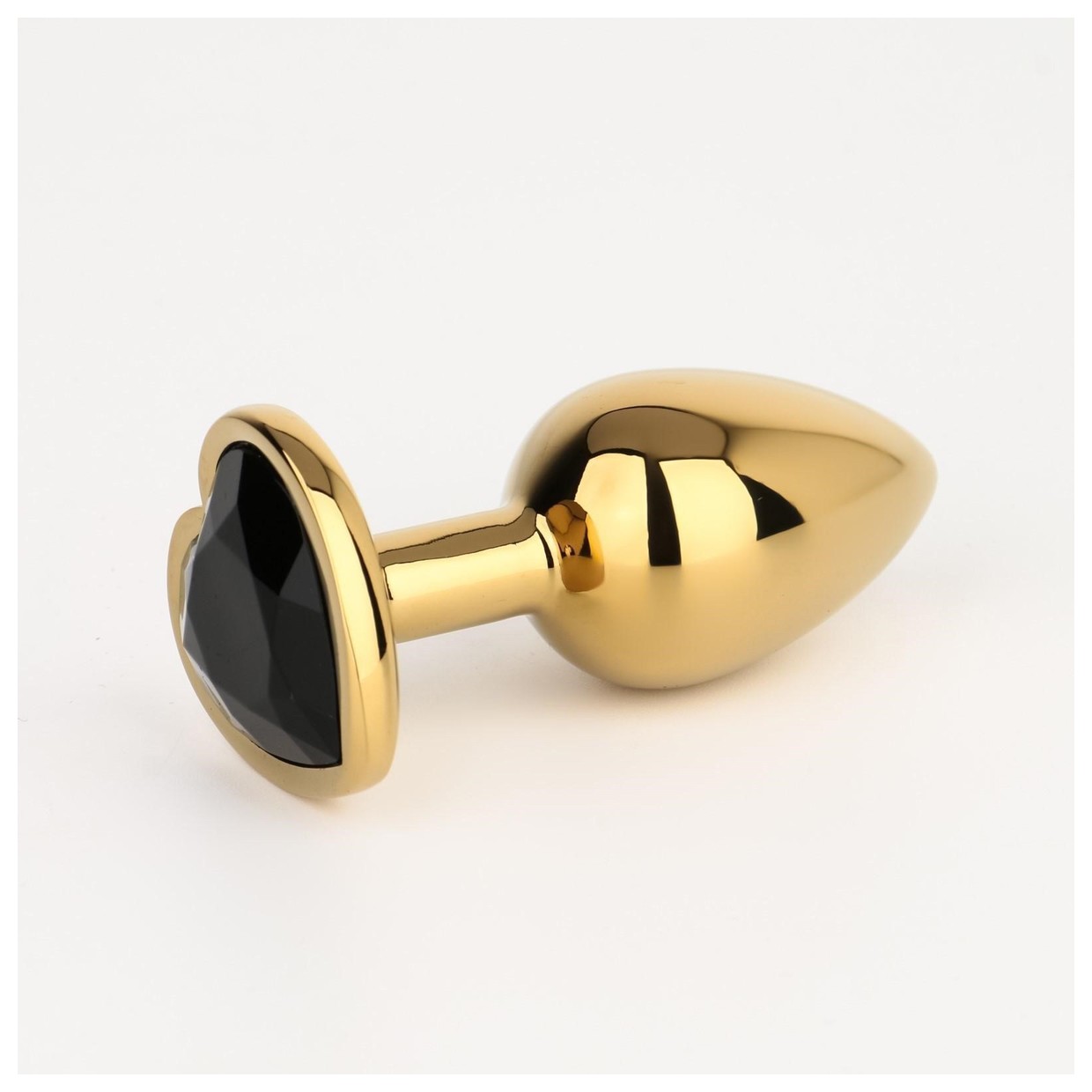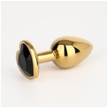 Золотистая анальная пробка с черным кристаллом в форме сердца - 7 см